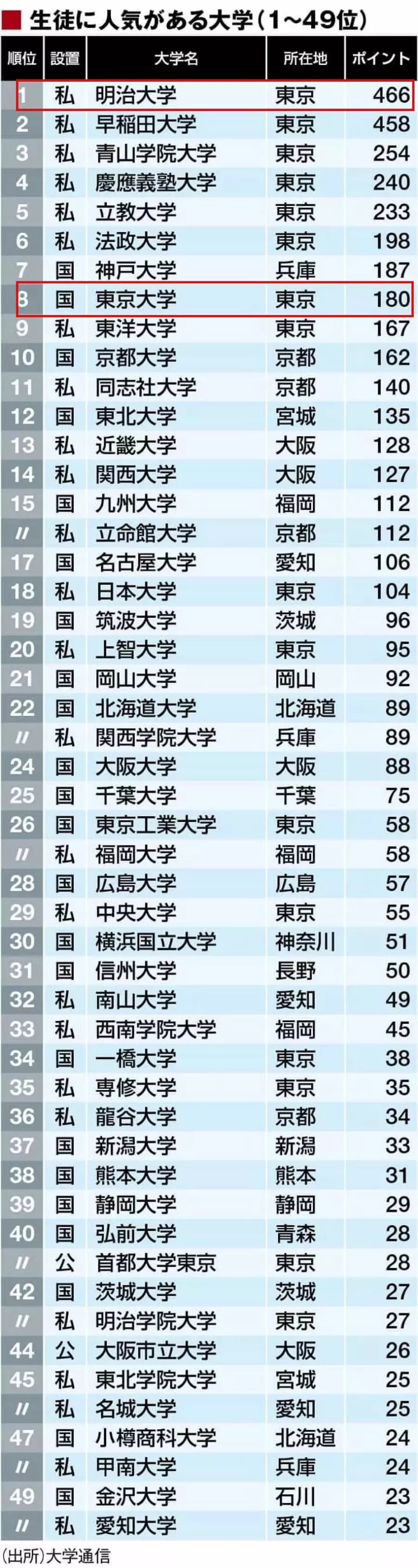 下面是小编搜集到的日本大学生心目中的人气大学排名表格,我们一起来围观一下吧~