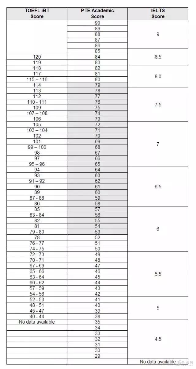 PTE: 全称Pearson Test of English 是在全球推出的一种新兴的,基于计算机的国际学术英语考试。考试形式是听说读写四种,所有听说读写四项技能的考核均在三小时内完成。总分90分,成绩两年内有效。
