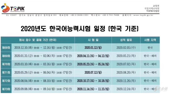 韩国报名: 2020.1.31日9:00-2.6日18:00