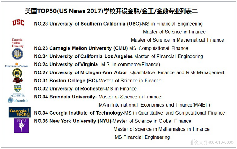 Top50 中,开设金融类硕士项目 25 所,刚刚一半;