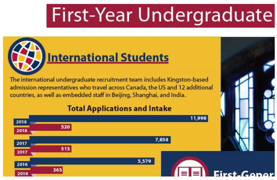 上图:参考2019年女王大学给出的enrolment report大学年报,2018年秋季一共有接近1万2千个国际留学生的申请,最终只有520个人入读。