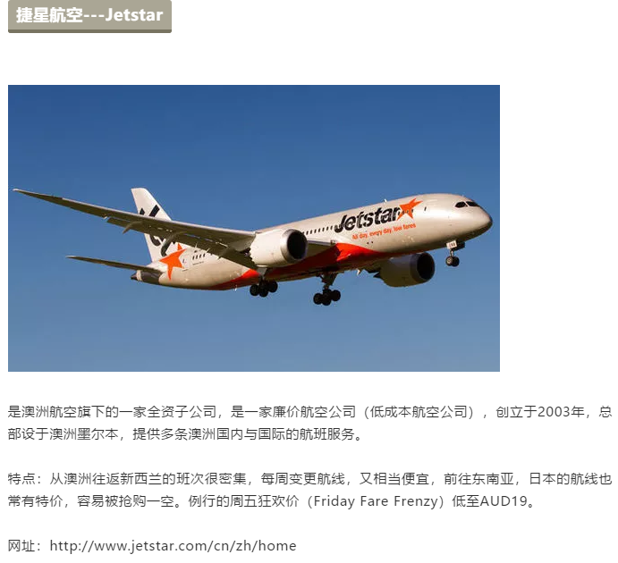 澳洲境内国土辽阔,城市分散,廉价航空备受欢迎,航空公司在争夺廉价市场中也异常激烈。