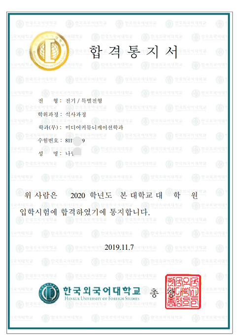 > 2020年3月提前批韩国外国语大学录取