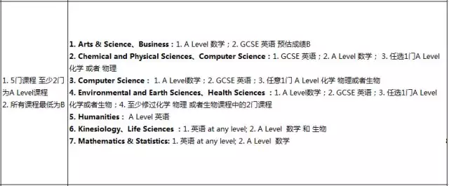 说了这么多,你对A-Level有个大概的了解了吗?姜老师给你们找来了这份入学条件给大家做参考,准备要留学的同学可要仔细看好喽。(以下表格中为一般要求+具体要求)