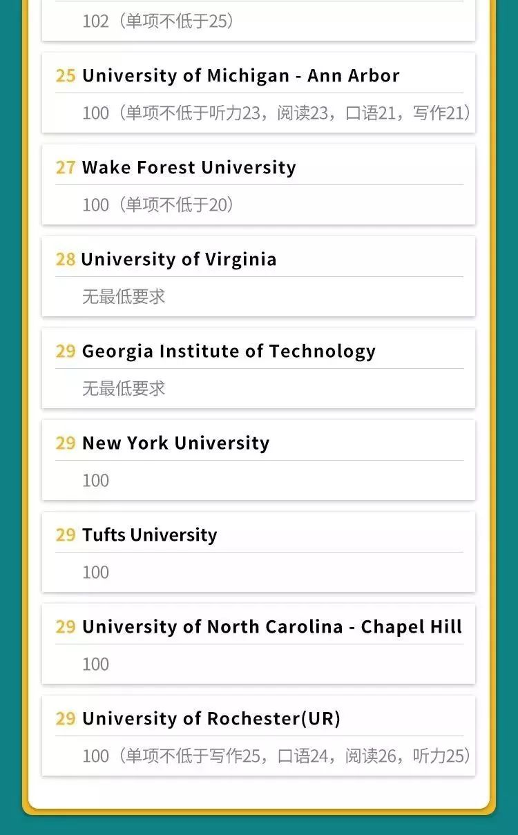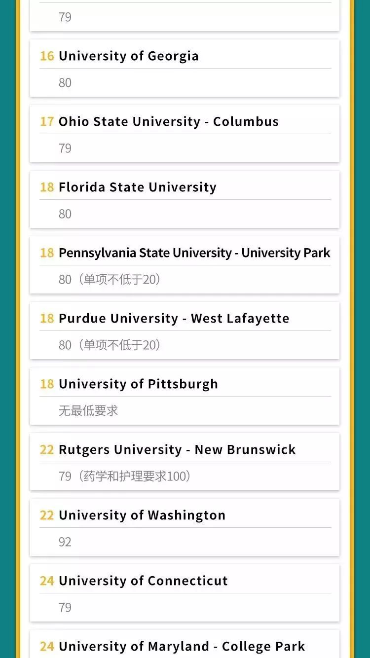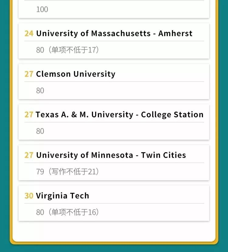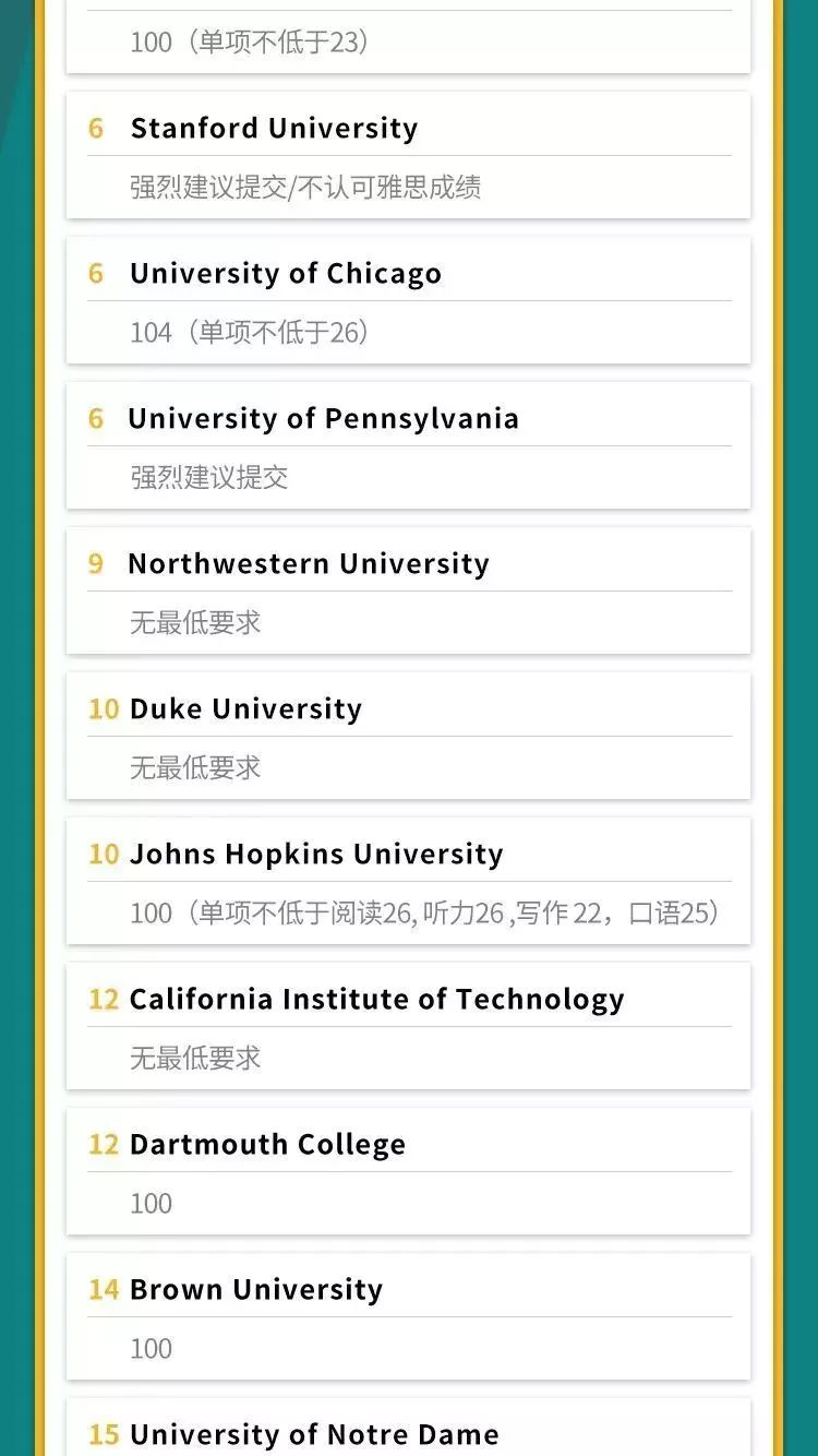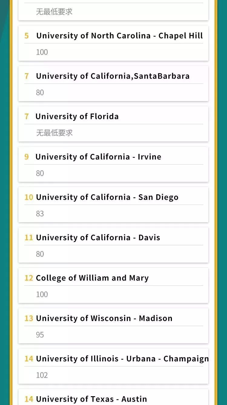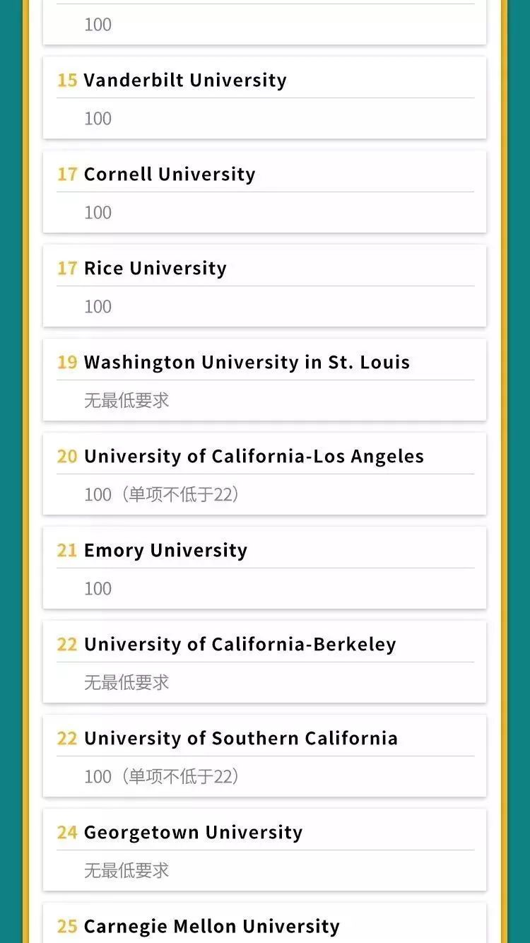 所以,为了帮助各位小伙伴更好地选择学校,托福官方联手 U.S.News重磅发布全美综合名校排行榜,并贴心地为大家标示出,各个名校的托福成绩要求。 帮助考生对照榜单,迅速筛选适合自己的院校。