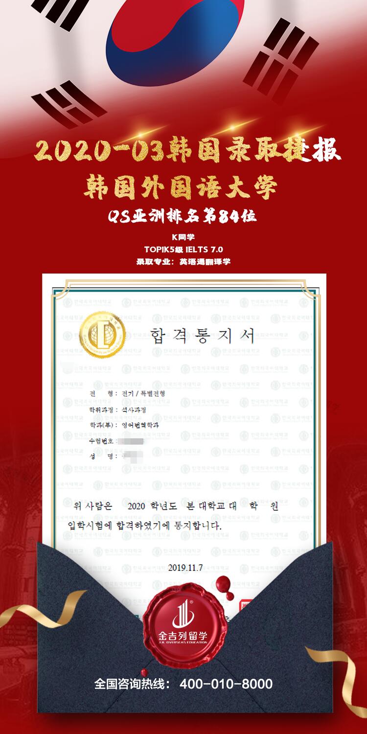 2020年3月提前批韩国外国语大学录取