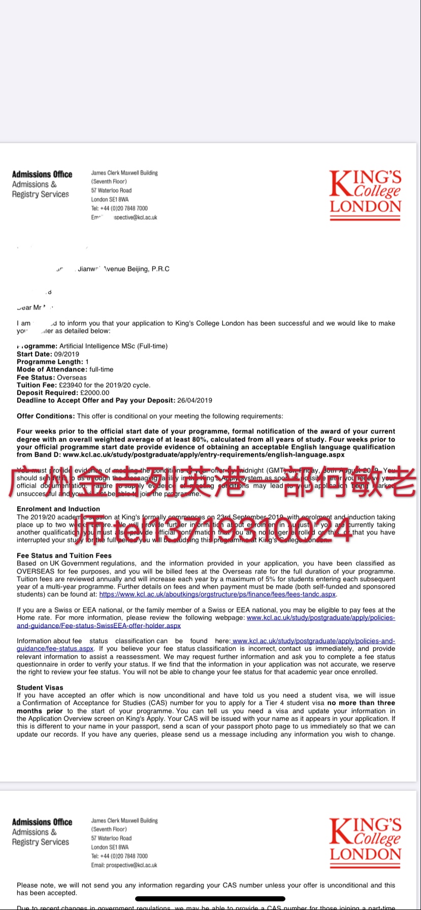 背景:985,83%,省奖,实习、社团经历,无雅思申请。在文书与材料中用心准备,最终斩获名校KCL的热门专业AI OFFER!