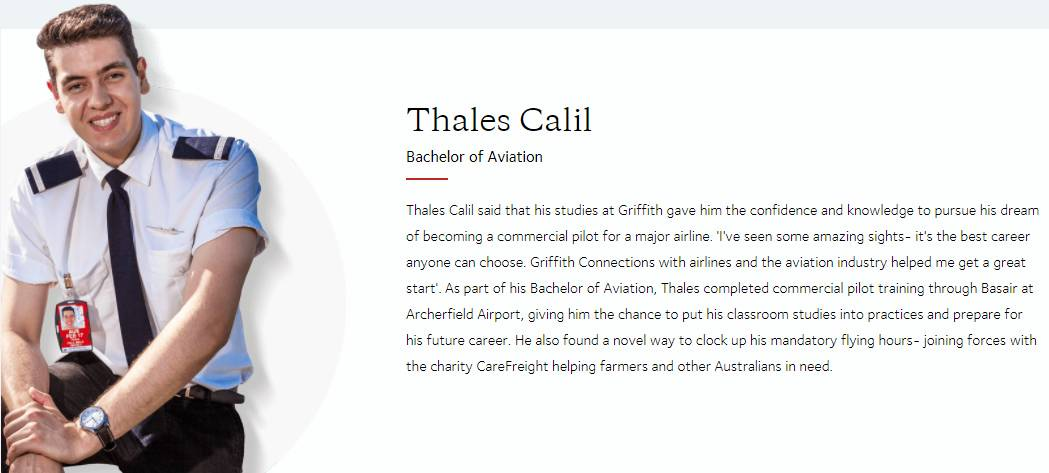 格里菲斯大学拥有澳洲最大、声誉最好的飞行学院之一。在过去的20年中,格里菲斯大学飞行学院毕业生在国际航空领域获得了超高的口碑,我们与业界保持广泛的合作关系,并在航空研究领域处于世界领先的位置。