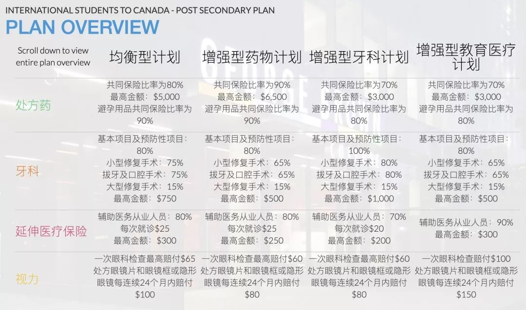 专业课国际学生的健康保险分为四种计划,在没有特别要求的情况下,会默认为大家选择均衡型方案。