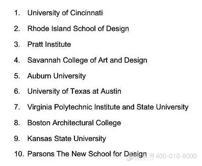 下图是全美室内设计的排名,只截了前10,今天介绍RISD,大名鼎鼎的Pratt,还有刚才提到的New York School of Interior Design。
