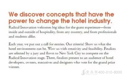 他们要给改变酒店行业的人颁奖,新想法,新设计,反正一切提高用户体验的iea他们都喜欢,RISD室内设计专业的Sophia就被他们看上了.