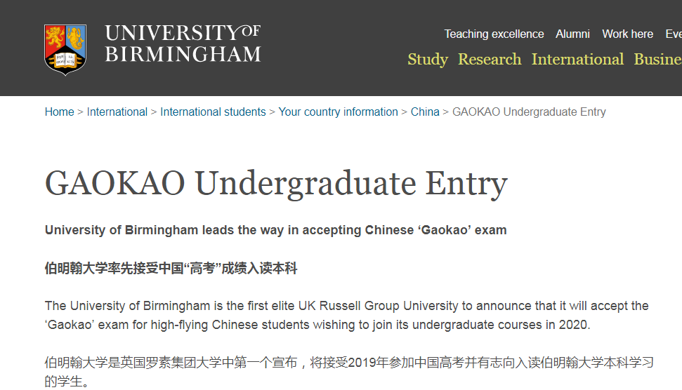 那么好消息来了,英国伯明翰大学率先推出接收高考成绩直读大一的计划,节省了广大学生的读预科的时长,尽早的完成就业。