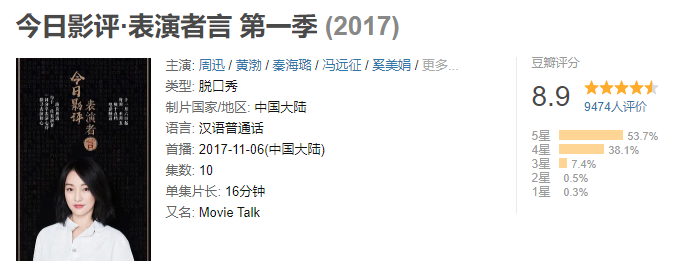 其实,演技类综艺节目在国内早已有之,CCTV和很多地方电视台都有办过,比如几年前,CCTV6电影频道的一款《今日影评·表演者言》,豆瓣评分就高达8.9分。