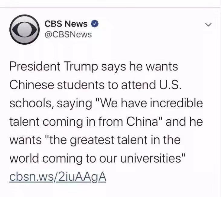 总统近期再次表示:我们欢迎所有合法的中国旅行者前往美国,包括学生和学者。北京的大使馆和全中国各地的美国领事馆中有尽职尽责的领事官根据具体情况裁定每一份签证申请。去年,美国教育机构里有36万名中国学生,比其他任何国家的学生都多。这清楚地表明美国高等教育是向中国学生开放的。