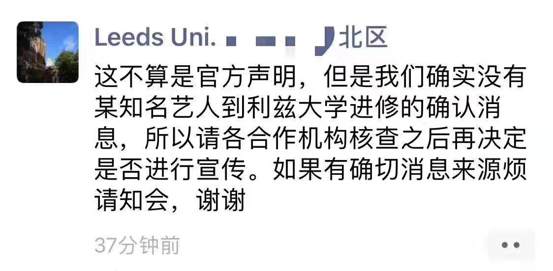 2、LEEDS今日非官方声明表示,没有该艺人在利兹大学进修。