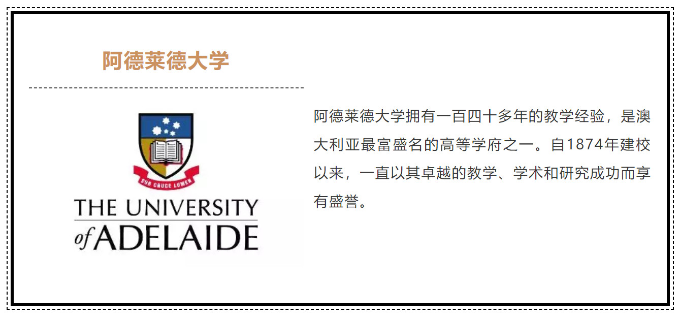 阿德莱德大学(The University of Aelaie)是南澳州(SA)的三大学府之一,澳洲八大联盟之一,坐落于首府阿德莱德。自1874年建校以来,阿德莱德大学一直以其卓越的教学、学术和研究而享有盛誉。
