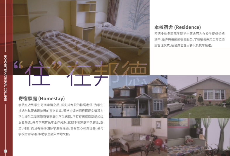 宿舍:学生可选择学校公寓或寄宿家庭(西方人家庭)