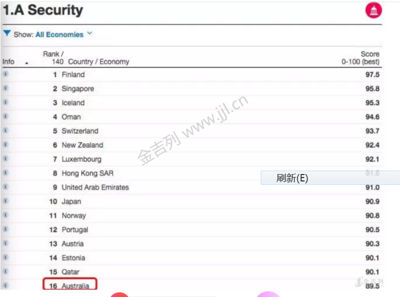 最近,一份《全球竞争力报告》中,总结出了世界安全性国家及地区的排名你们猜猜,澳洲排第几?.