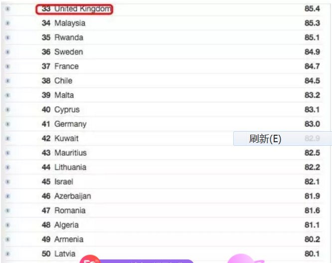 澳洲排在了16位 ,远超了排在33名的英国,和56名的美国,而中国的安全性排名则在美国之上。