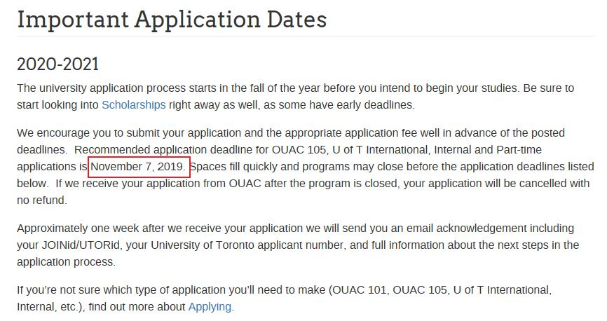 滑铁卢大学公布的申请截至时间是2020年3月27日,补充材料提交时间是4月3日。部分专业截止日期更早,工程专业网申截止日期为1月31日,材料截止日期为2月28日。数学院(包括其下属的滑铁卢的强势专业CS)也是这两个截止日期。