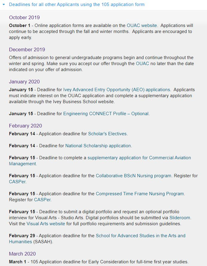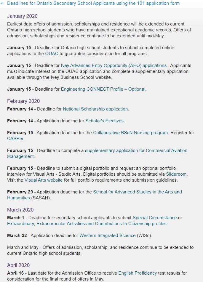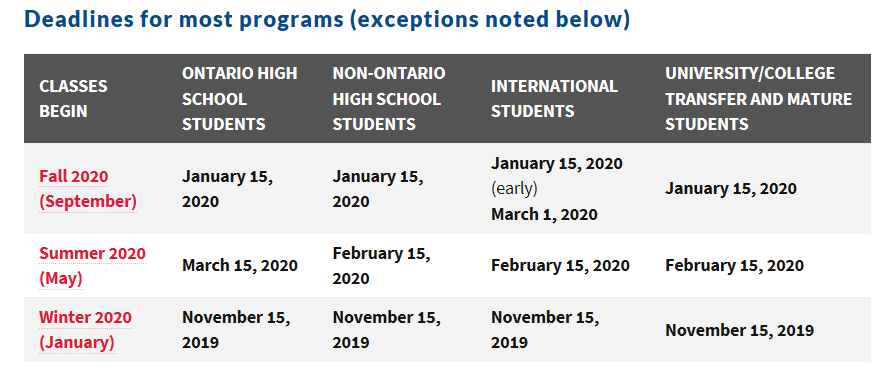 安省本地及国际学生的申请截至时间是2020年1月15日。