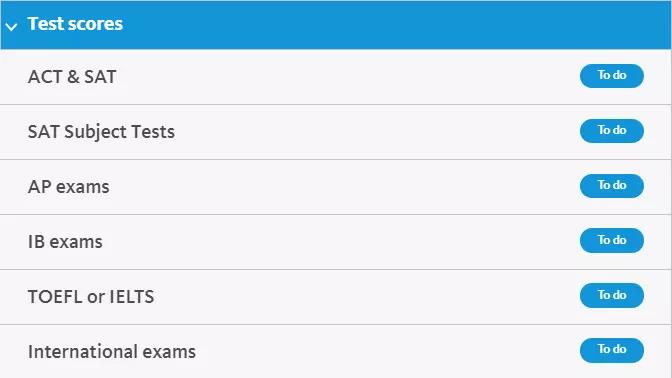 这一部分是申请者报告标准化考试成绩的部分,是申请者输入自己ACT/SAT,SAT Subject Tests以及AP, IB课程及分数的地方。SAT是要求申请者填写最高分数的一次,不是拼分结果,别忘了加州系都要提交写作成绩。