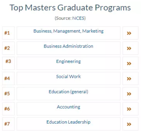 Graschools.com根据国家教育统计中心NCES统计的学位颁发数量,找出了最热门的硕博学位,大家如果还没确定选校和专业的话,可参考一下: