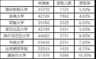 普林斯顿大学录取率一低再低,且和哥伦比亚大学并列八大藤校录取率第二低。在所有申请者中,40.35%的GPA是4.0,超过50%的SAT高于1400分。而耶鲁大学受扩招政策影响,录取率有所上升,耶鲁录取率在哈耶普三校中最高。