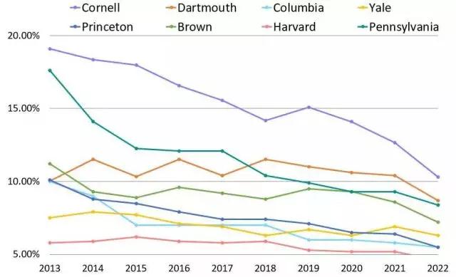 常年申请大热的康奈尔大学,虽然录取率仍然保持在10%以上,也还是最“亲民”的藤校,但是直线下滑的录取率,还是让把他作为梦校的学生着实心里捏了一把汗。