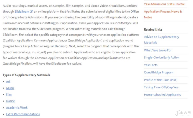 耶鲁大学给出了一个第三方网站链接,申请者可以将自己音乐、艺术、电影、舞蹈、学术、其他推荐信等补充材料,通过这个网站上传。 那么,这些补充材料在申请中起到什么作用呢?