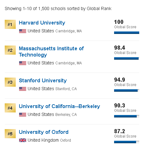 而USNEWS的世界大学排名晚于美国综合性大学排名,今年是第6年评选,选取了81个国家和地区的1500所大学,其排名 更看重学术研究能力与学术声誉(占25%) 。