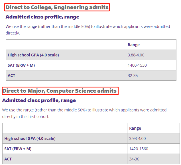 以下是华大西雅图官方给出的计算机和工程学院的录取标化成绩区间,可以给想要申请的同学一个参考。