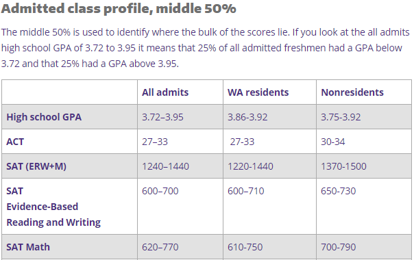 根据官方数据,华大西雅图录取的GPA平均在3.72-3.95、SAT平均1240-1440、ACT平均27-33之间。另外华大正在寻找的不仅仅是受益于大学提供的学术和文化机会的学生,而且还可以为大学的活力和丰富经验做出贡献的学生。所以除了标化成绩之外,华大也看重学生的综合能力,文化和课外活动在个性化审核中也很重要。