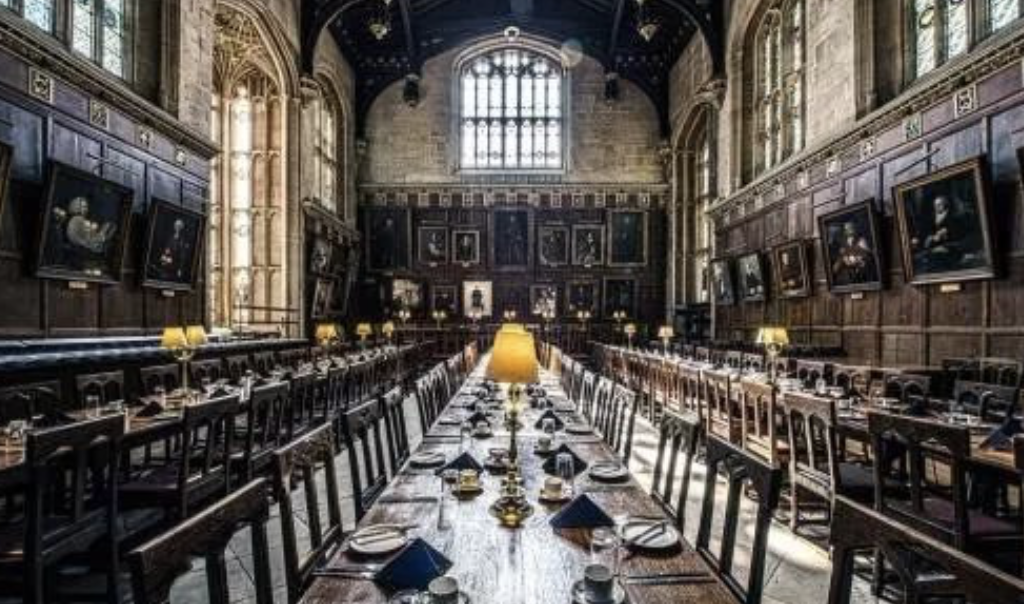 比如,魔法学校的食堂就和牛津大学城内的基督教会 学院食堂 几乎一样,电影也是在后者取景的。