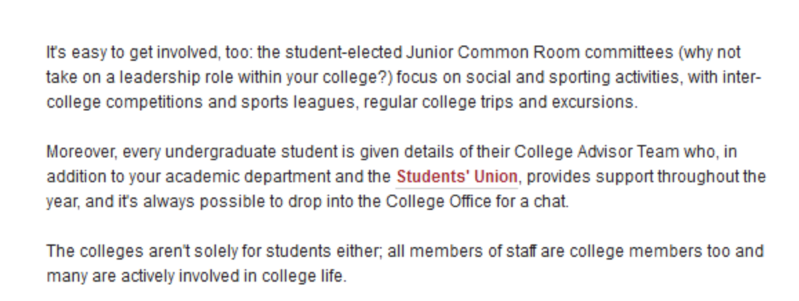 杜伦大学的各个学院非常重视 社交属性和归属感 ,只要你曾经在某个学院居住,就算你下个月搬出去了,你也是这个学院的人,学院的活动依然可以参加。