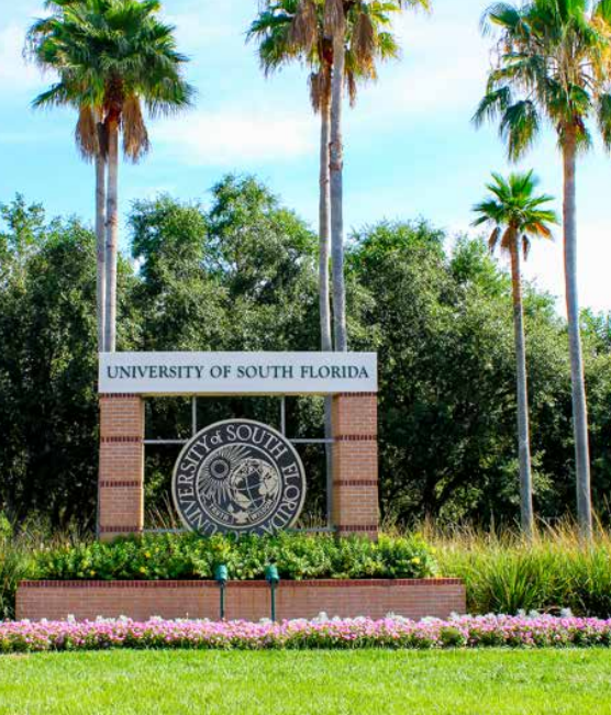 南佛罗里达大学Tampa主校园占地1700英亩,是美国占地面积第九大的学校,另外3个校园为St.Petersburg(圣彼得堡)、Sarasota(撒拉索塔)和Lakelan(来克兰)校园。学生开车1小时可到达奥兰多迪斯尼世界。学校顺应了城市快速增长后所需大量人才的趋势,在几十年内成长为美国主要的研究性大学之一。被卡耐基基金会列为“教学艺术高等学校”之一,拥有大批出色的教师,以及位列“美国研究性大学100强”之列。每年,学校都能接受到大约250,000,000美元的外部资助,用于各类研究和发展项目。时至今日,南佛罗里达大学已经成为佛州第三大及全美前二十大公立大学之一。