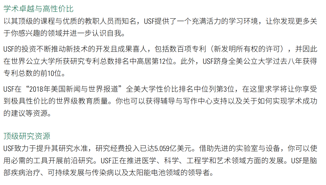 南佛罗里达大学(University of south Floria)建于1956年。这所新型的大学仅用40多年的时间从开始的2000名学生发展到拥有4.7万名学生的大学,成为全美20所最大的大学之一,而且仍在不断地发展。南佛罗里达大学是63所美国国家一流的公立研究大学中的一所,并且是39所社区锁定,4年制公立大学中的一所。
