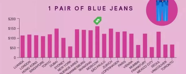 而一条质料良好的牛仔裤,在澳洲悉尼大概90澳币左右,而在上海平均几乎卖到150澳币左右。