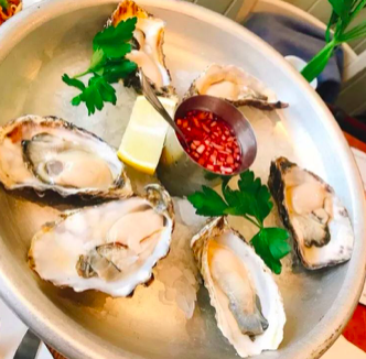 除了炸鱼薯条,我在英国最喜欢、也经常去吃的便是生蚝了,这里安利一下利物浦的生蚝,下图这家是我比较中意的,名字是The Italian Club Fish,生蚝一般都很新鲜,没什么调料,就加点酒、柠檬汁和洋葱,鲜嫩可口,价格也比较实惠,是值得一去的地方。