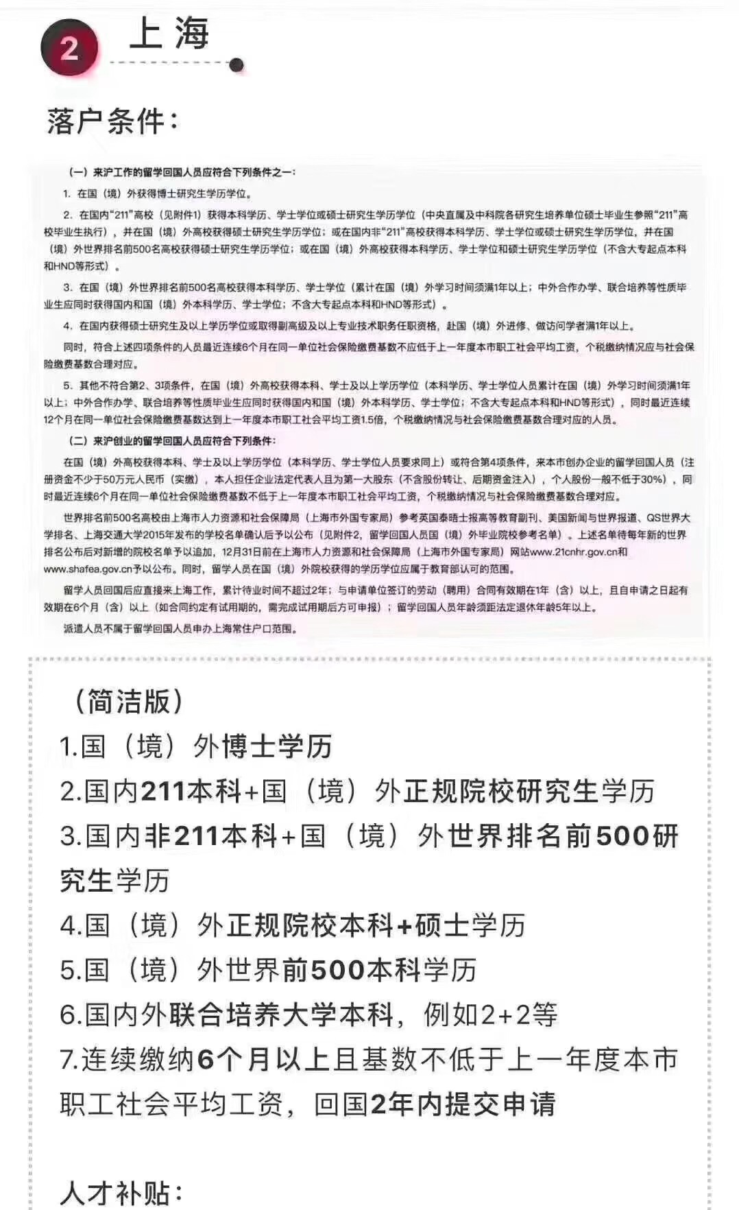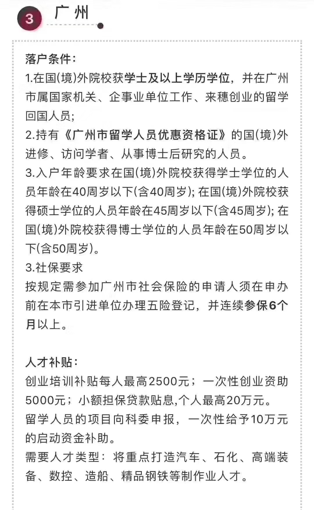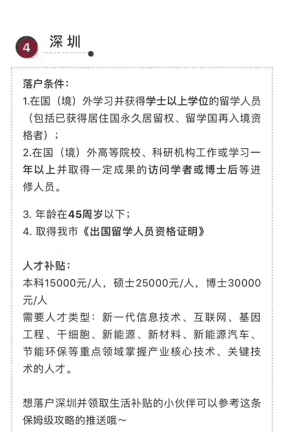 归国留学生北上广深落户政策