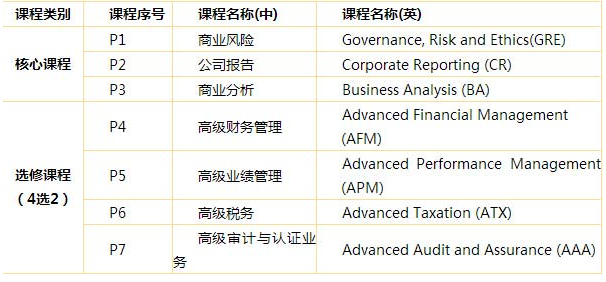 主要分为核心课程和选修(四选二)课程。该阶段的课程相当于硕士阶段的课程的难度,该阶段课程引入了作为未来的高级会计师所必须的更高级的职业技能和知识技能。选修课程为从事高级管理咨询或顾问职业的学员,设计了解决更高级和更复杂的问题的技能。具体课程为: