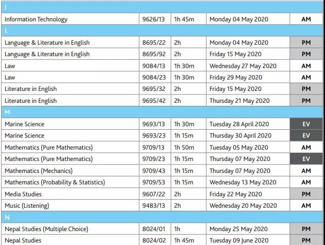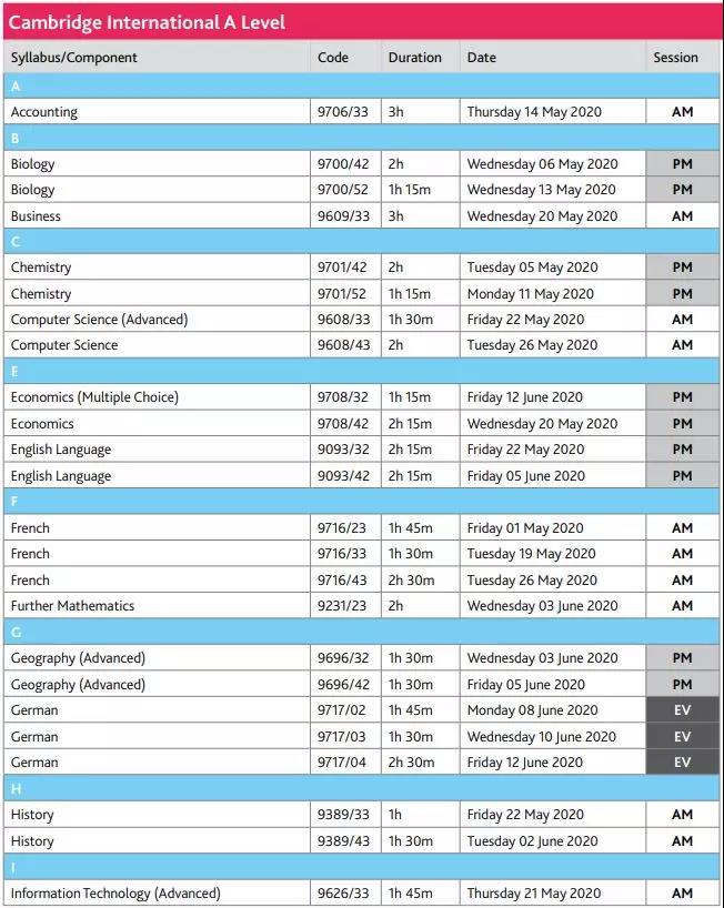 暖心能力十级的思思老师又早早给大家整理好了 CAIE 2020年6月A-level与IGCSE考试时间表 ,要收藏好哦~