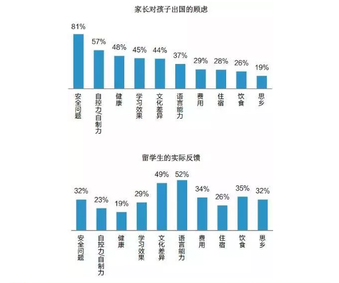 根据2018年中国留学生数据概率分析,中国留学生数量呈稳定上涨趋势。数据显示,中国留学生家长最担心的问题中,安全问题排在第一位。