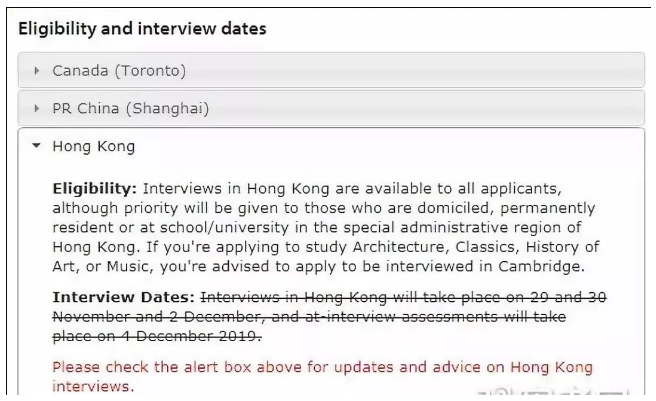 今年剑桥大学还是会进行全球招生面试,今年除了香港的面试地点被取消,在上海、孟买、吉隆坡、新加坡等地方作为面试地点, 上海面试将于11月25至27日举行 ,所有申请人均可接受面试。