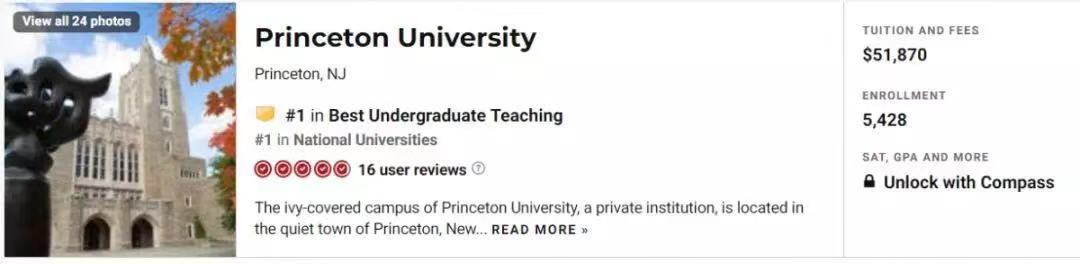 果然,综合大学排名第一是有绝对实力的。连续多年霸榜U.S.NEWS的普林斯顿大学在本科最佳教学排名上也是榜首的位置。