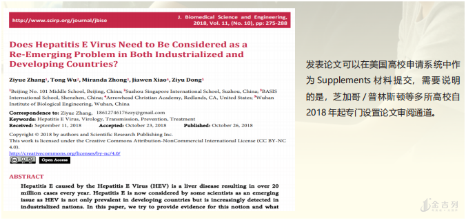 项目学生在完成项目后将由教授指导一篇结业论文。论文 100% 发表国际一线学术期刊(保证国内知网 /Doi 检索收录,如需发表 EI , SCI 核心期刊,可能涉及到额外费用)。 将以小组为单位发表论文(每组 3-5 人)。发表周期月 1-3 个月,并在 3-5 个月内上检索系统。但以下两种情况除外( 1 )有个人单独发表需求的,需额外缴纳审校费用。( 2 )同组全部其他学员共同反对该学员加入作者名单,并经核查该学员确实未能完成基本工作的 . 发表论文可以在美国高校申请系统中作为 Supplements 材 料 提 交, 需 要 说 明 的是,芝加哥 / 普林斯顿等多所高校自 2018 年起专门设置论文审阅通道
