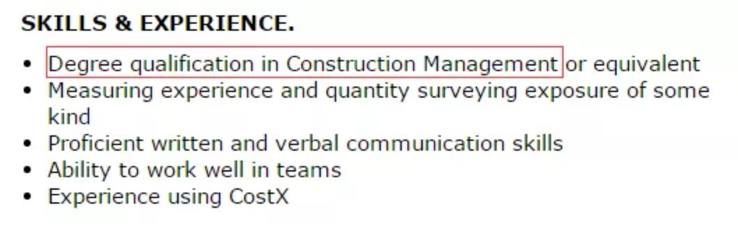 除了测量软件的使用、口头及书面表达,以及团队协作技能,首当其冲的就是一个 受认证的建筑管理学位 啦!