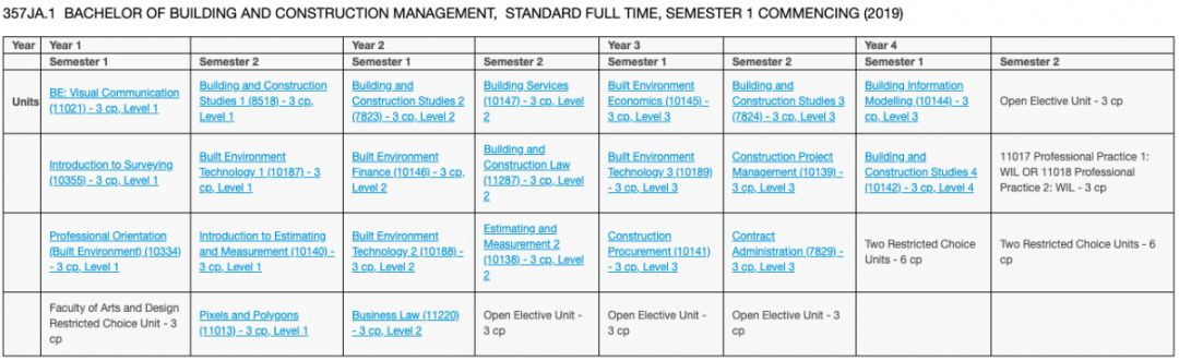 专业方向的学生可辅修如工料测量、建筑及小型企业管理等课程,在广度上拓展自己的知识领域,对应澳洲学历资格框架AQF 7等级的学历水平。