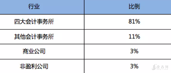 我以2017届密歇根安娜堡大学和圣母大学公布的会计毕业生就业统计为例,给大家介绍一下美国会计硕士的就业基本情况,下图是密歇根安娜堡大学毕业生就职行业统计: