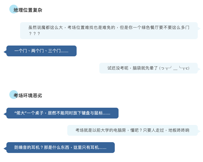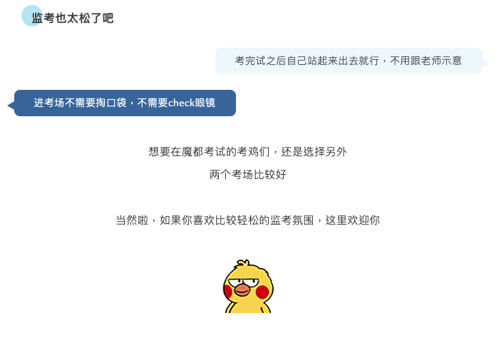 PS. 很多考鸡吐槽考场难找,因为迷路而迟到的烤鸡屡见不鲜。所以在考试前一定要提前踩点!